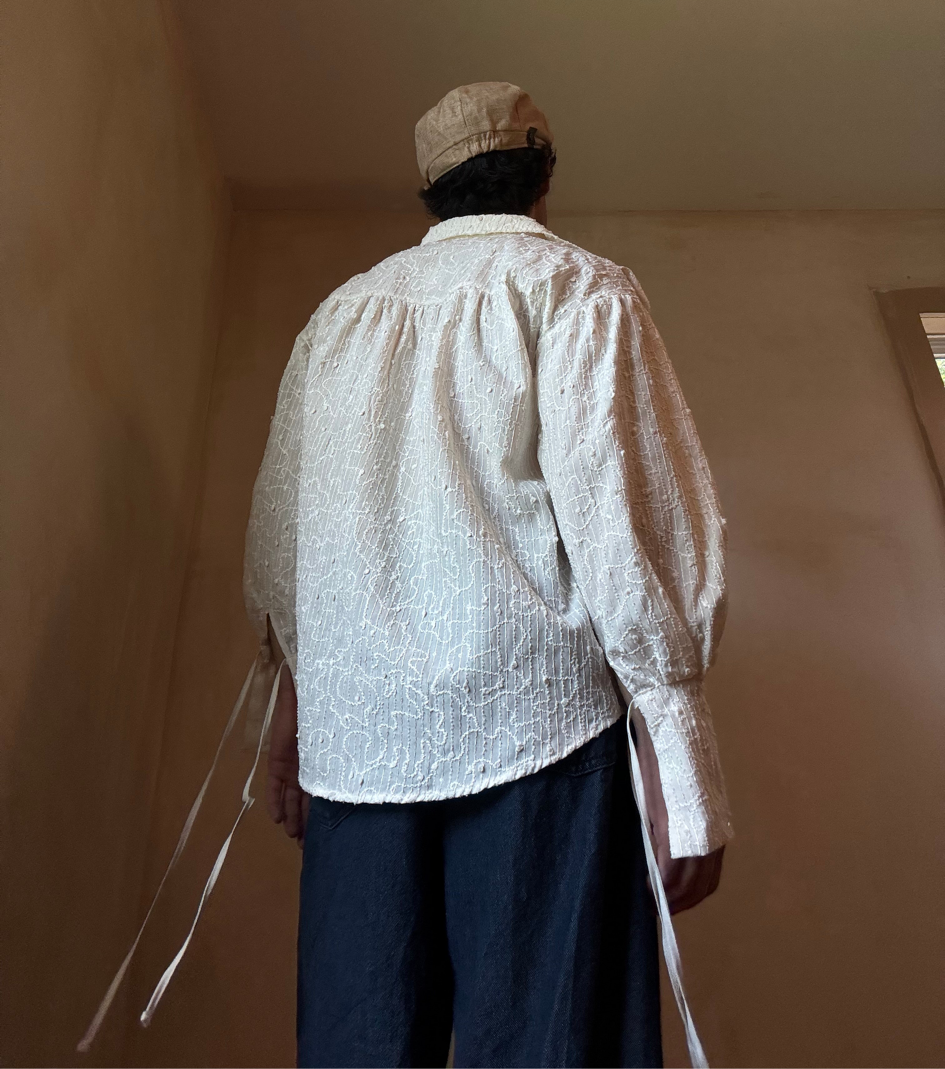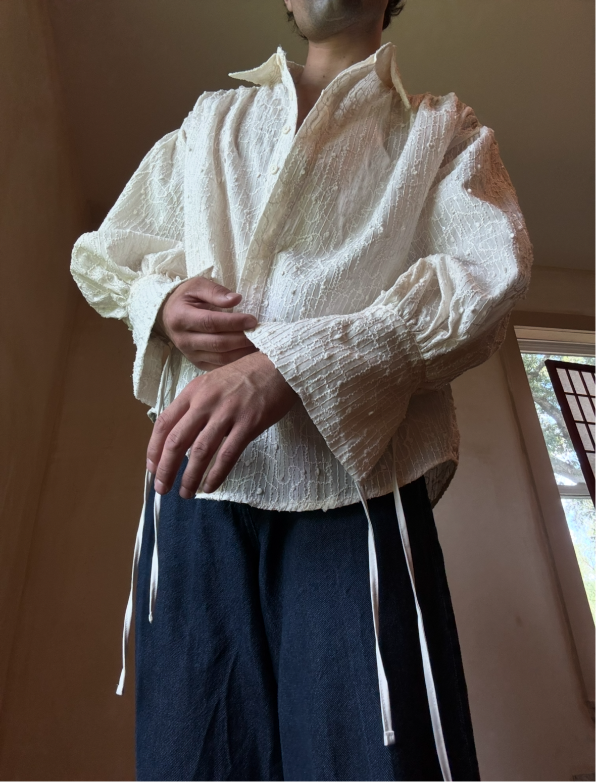Beige Embroidered Button Down